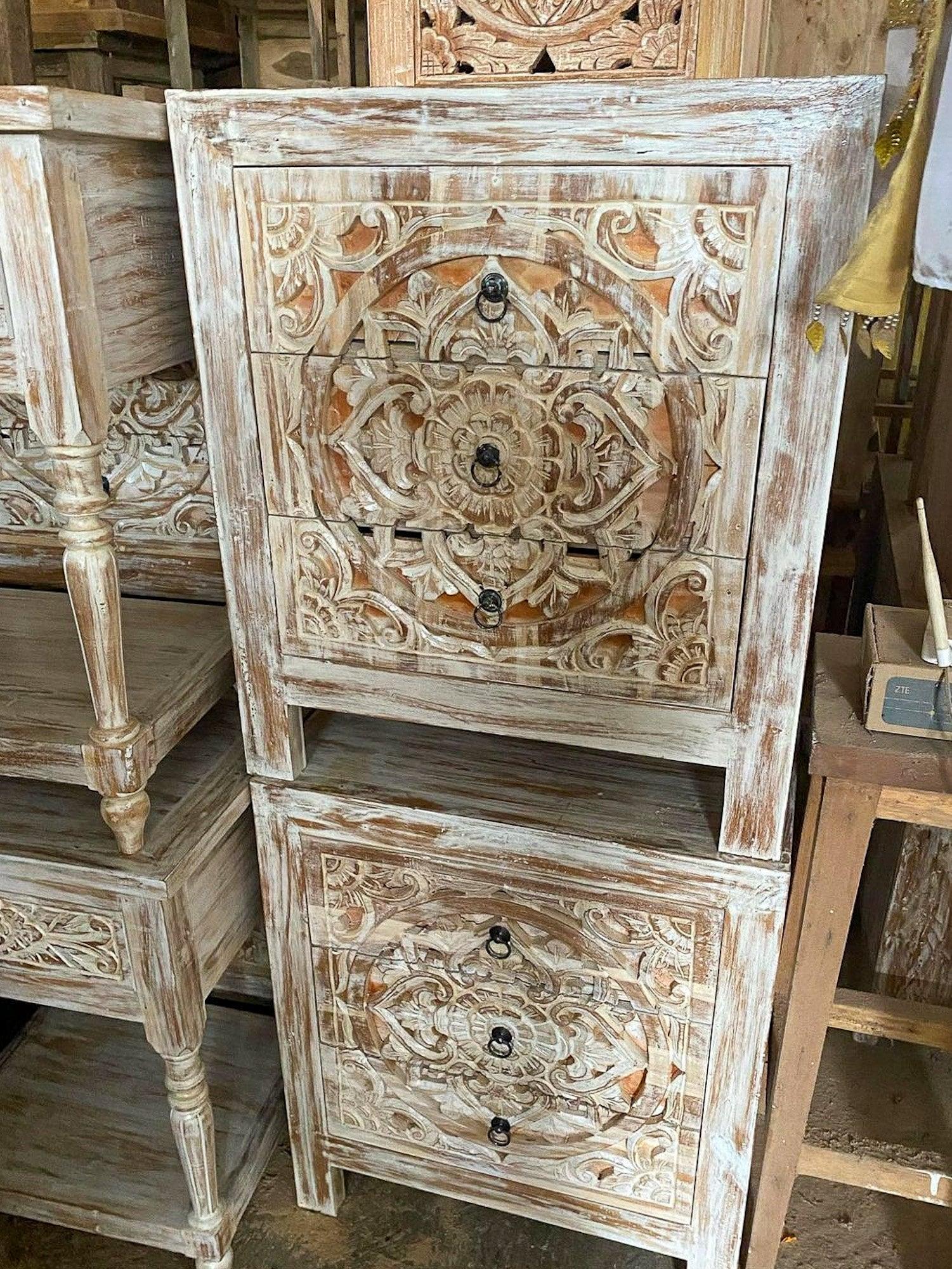 Hand carved Bedside Table is an authentic product made in Bali, Indonesia. All our products we provide free shipping to Europe, US, Canada, Mexico, Asia, Australia and New Zealand (the price is including shipping fee). We can customize the design and color as per your requirements please contact us to place an order.