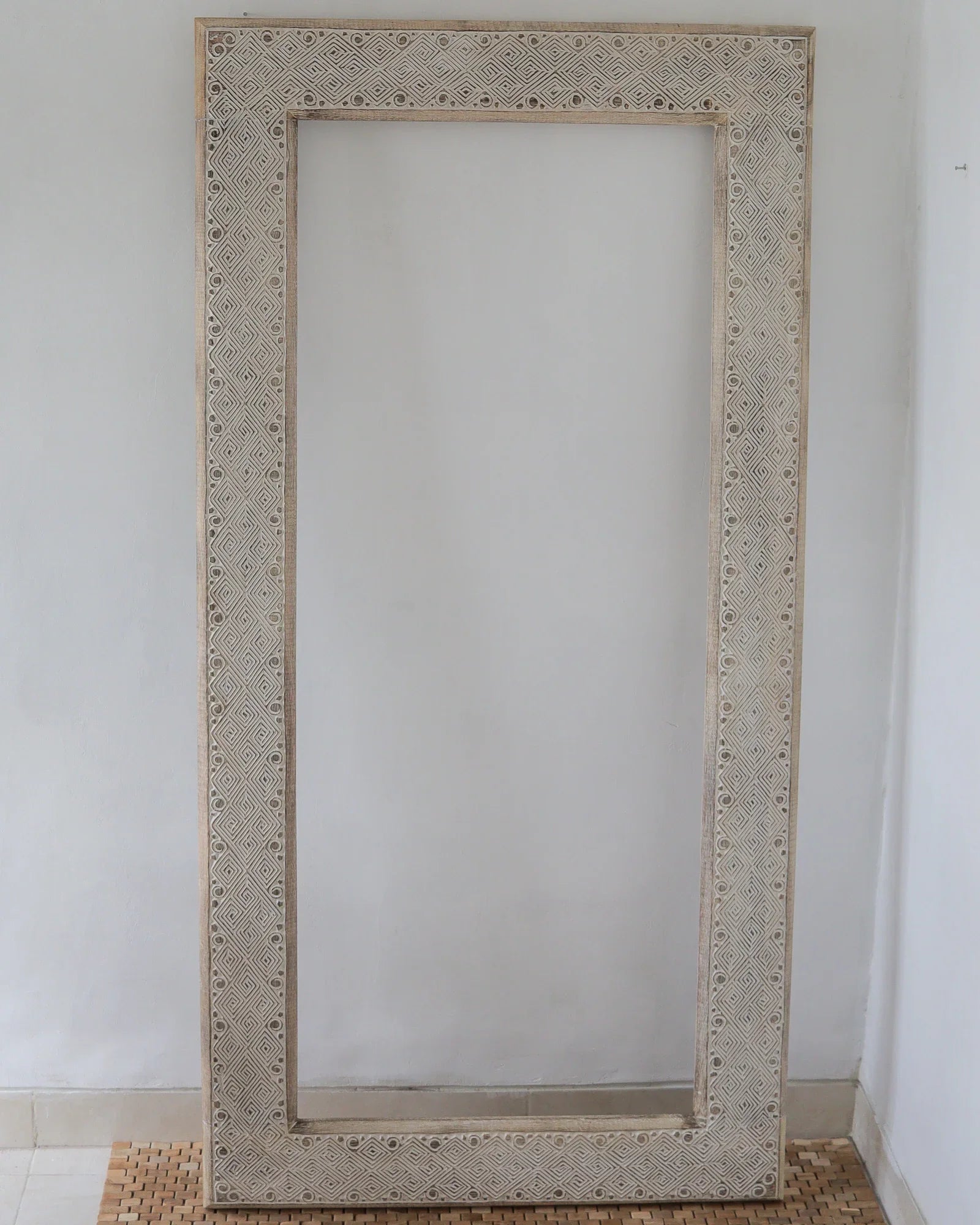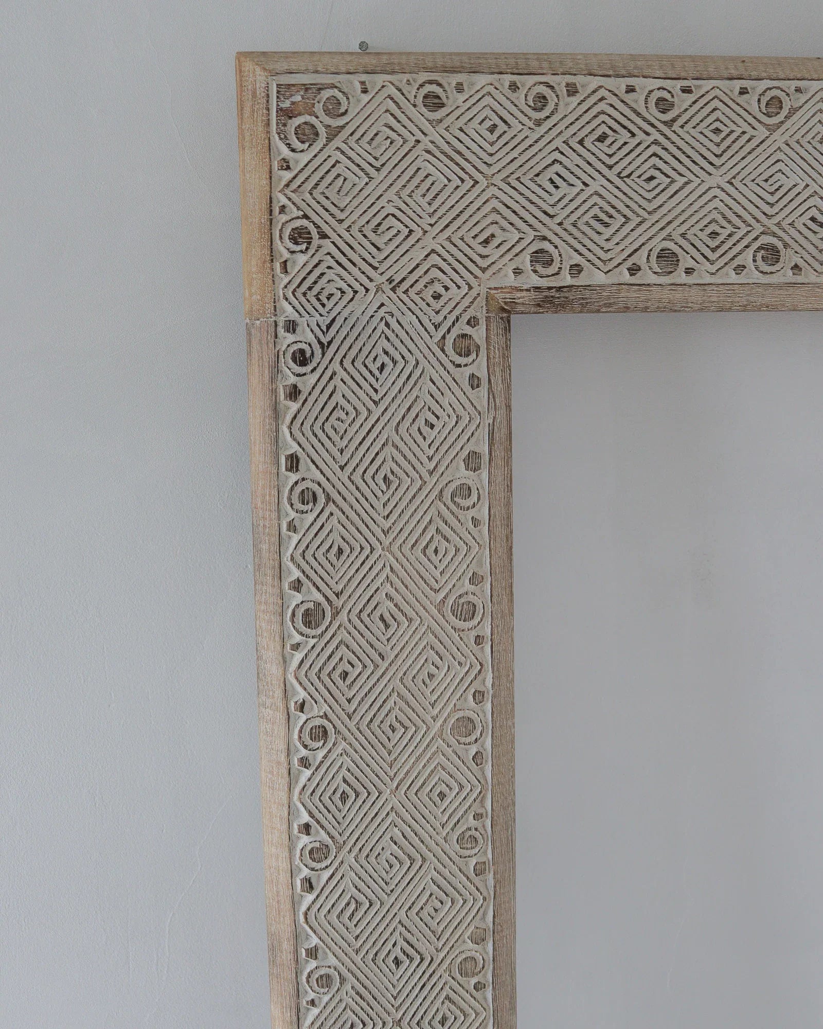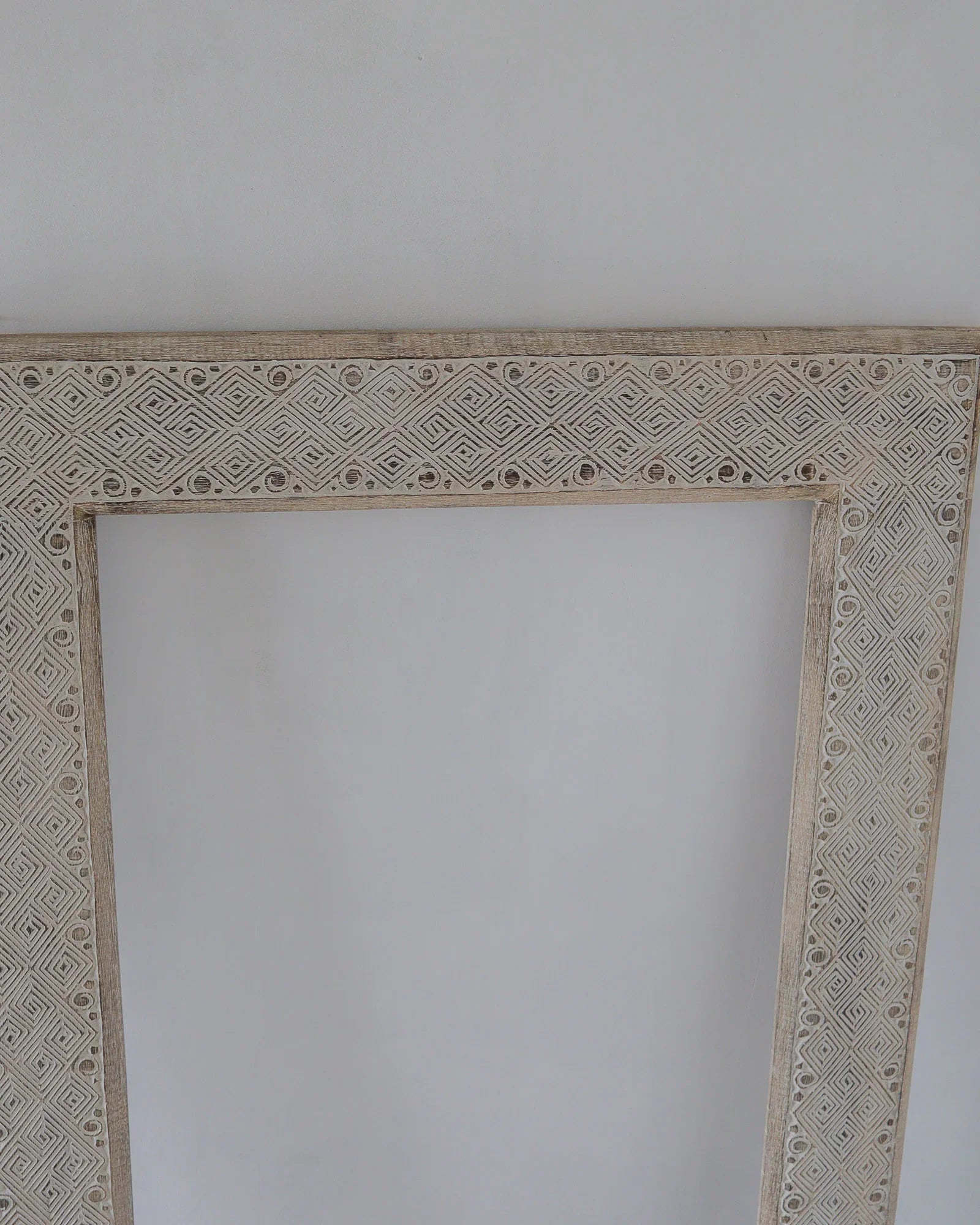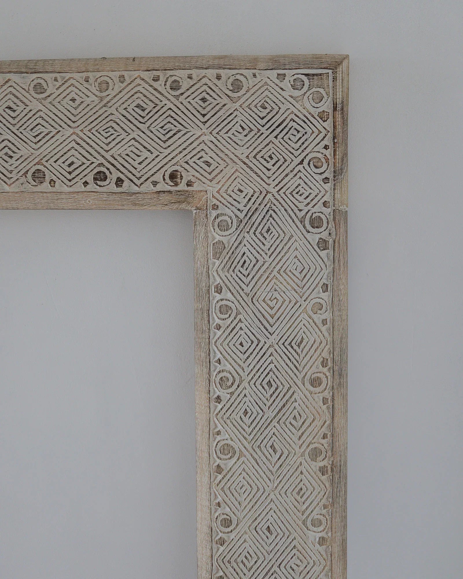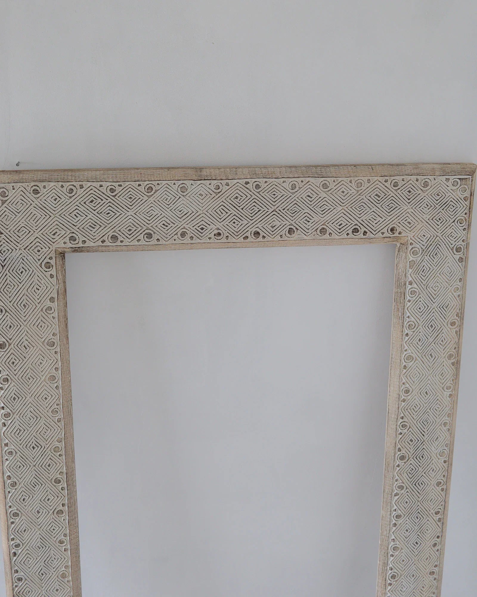 Hand Carved Mirror Frame ethnic White Wash 180 x 90 cm