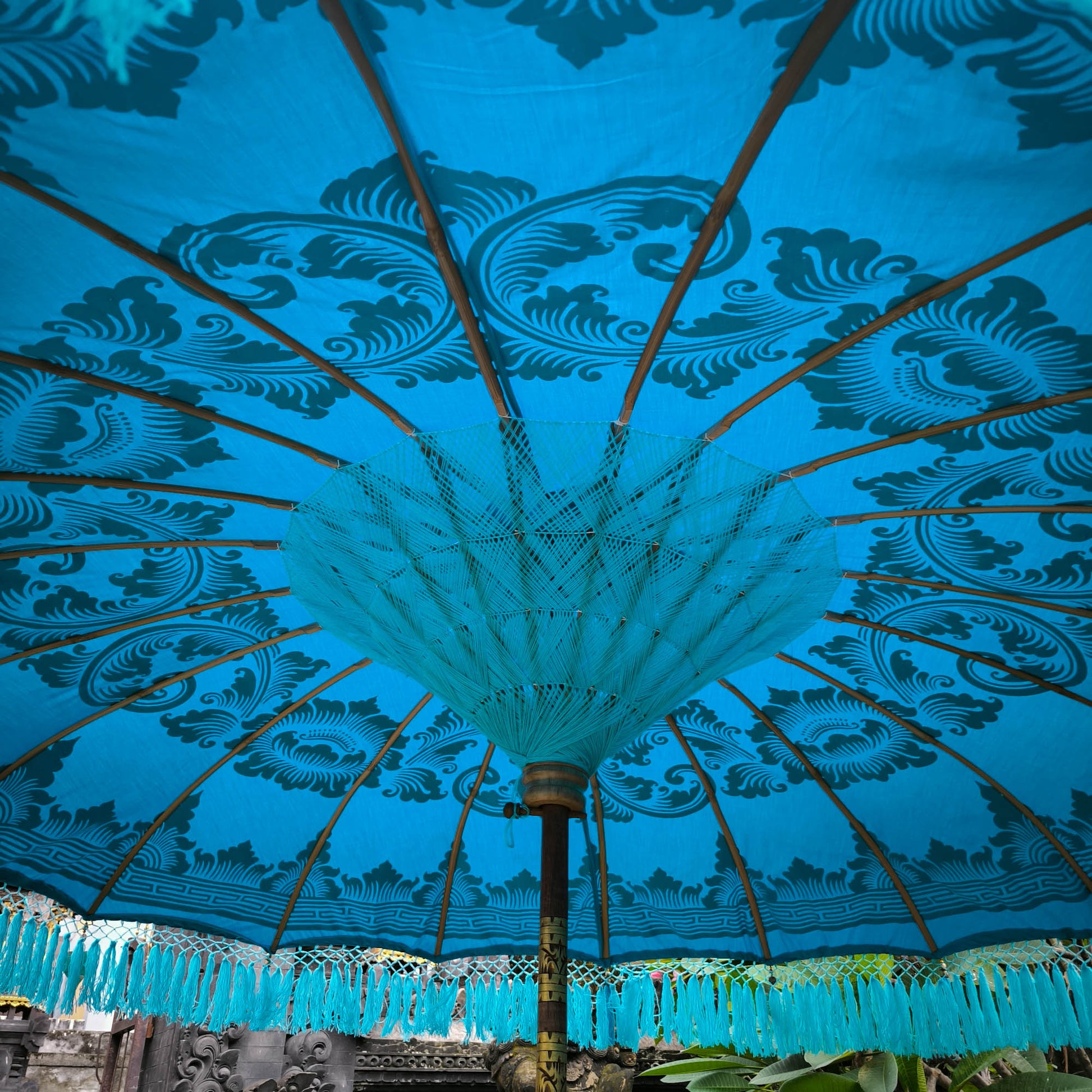 Handmade Balinese Parasol Decoration in Blue Tosca