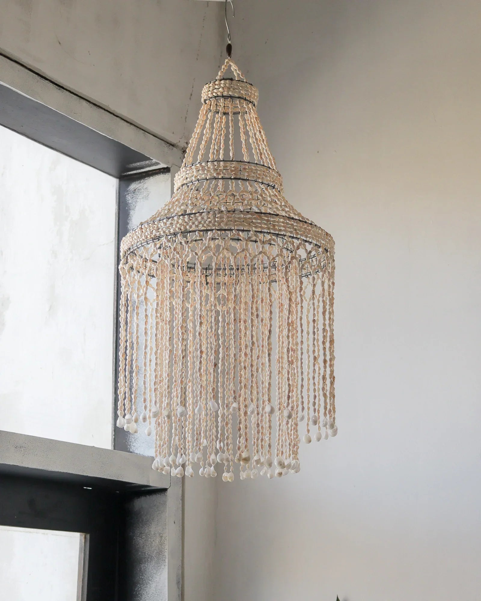 Enhance your space with our handcrafted Sea Shell Chandelier, made with authentic materials from Bali. Each piece is individually handmade, requiring 5-7 days for production before shipping.